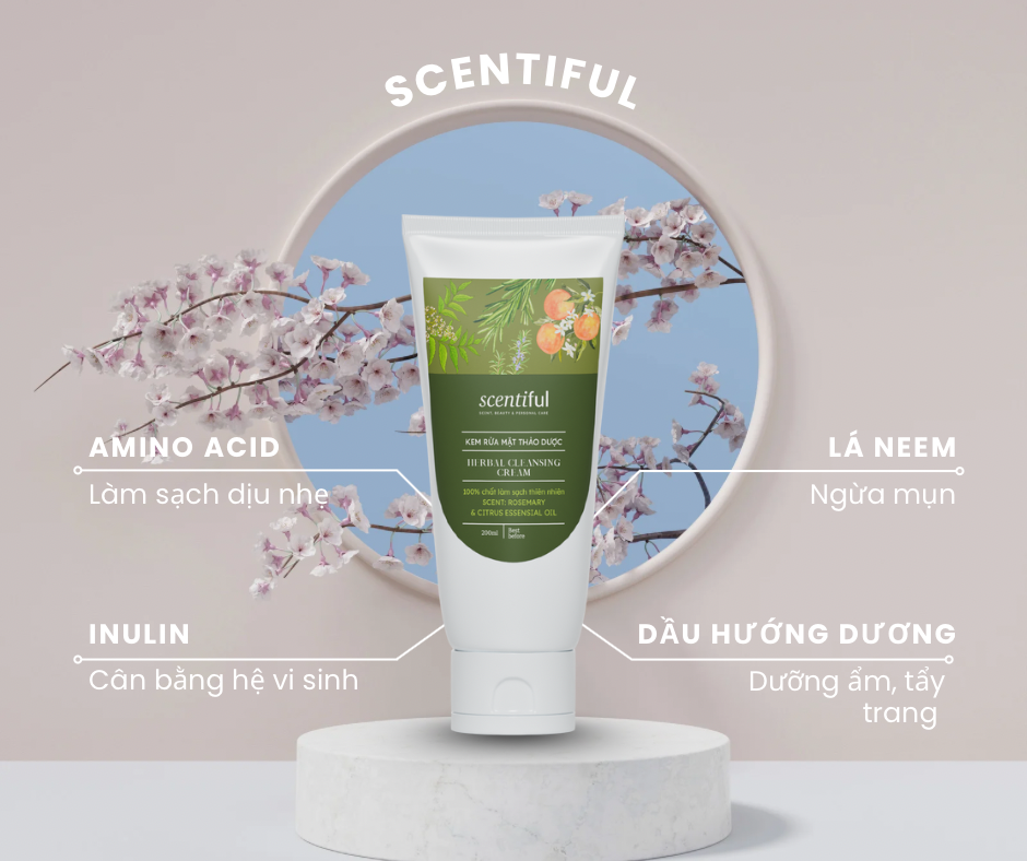 Herbal Cleansing Cream là giải pháp làm sạch 4 trong 1 dành cho những ai yêu sự tối giản nhưng không muốn bỏ qua hiệu quả. Sản phẩm tích hợp khả năng tẩy trang nhẹ, làm sạch sâu, kháng khuẩn và giữ ẩm trong một bước duy nhất – lý tưởng cho làn da dầu mụn, nhạy cảm hoặc người bận rộn.